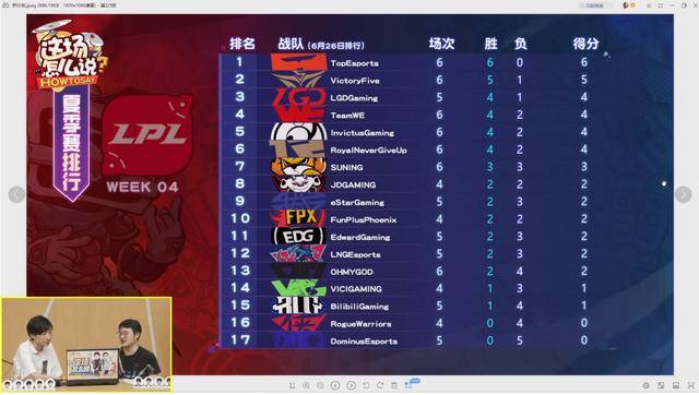 当电棍与joker复盘完全华班RNG与夏季赛吊车尾V5的比赛后,便来到了备受关注的夏季赛排行榜环节。joker与电棍目睹截止到6月26日的夏季赛排行榜,joker表示排行榜第一的TES已经没有短板可言,在与LCK对抗赛时更是表现出色,怎么夸TES都不为过,而电棍对joker的话也表示赞同。