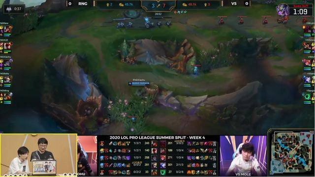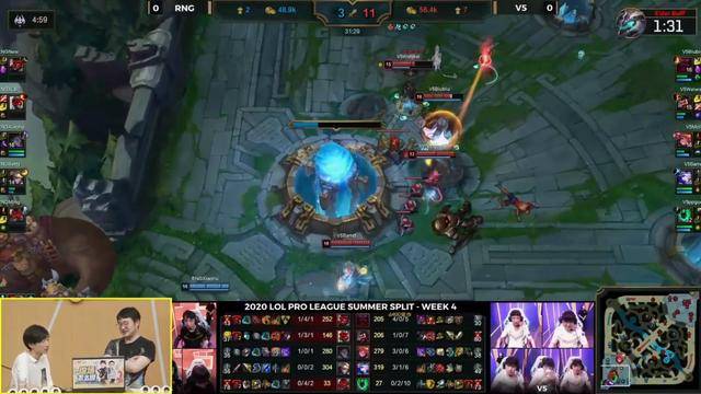 聊完TES与V5战队后,电棍哥看着夏季排行榜的数据表示,比较担心全华班阵容的RNG。毕竟目前的RNG不仅没有核心人物,更没有抗伤害人物的存在。在与V5战队的比赛中,中路的xiaohu玩了半天比赛才打出了1-0-1的战绩,估计是想去101女团参加比赛直接出道。
