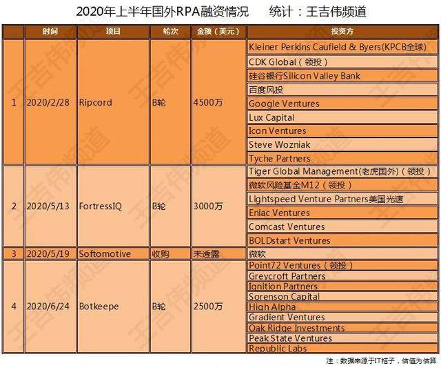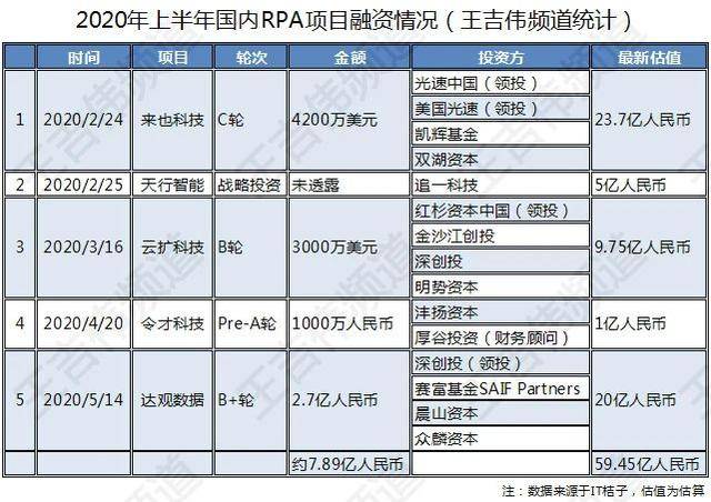 2020上半年RPA投融盘点:8亿金额60亿估值,RPA第一梯队正式成型