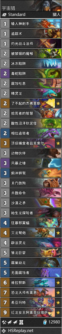 来自HSReplay 的5套标准天梯卡组推荐。数据来源过去一周(6月20日到6月26日),分段钻石到传说。