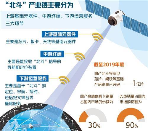 想知道“北斗”的应用前景有多广阔,首先要搞清楚“北斗”的产业链结构。据了解,“北斗”产业链主要分为上游基础元器件、中游终端、下游运营服务3大环节。其中,上游基础元器件主要是芯片、板卡、天线等基础元器件;中游终端主要是指能接收“北斗”信号的导航和定位装置;下游运营服务主要是指为政企用户、行业用户、服务商和大众消费者提供基于“北斗”的定位、导航、授时、短信报文等各类基础服务。