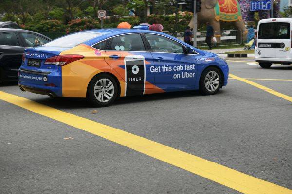图说:3月26日,一辆印有优步公司广告的出租车在新加坡街头行驶。新华社发(邓智炜摄)游戏网