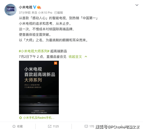 原标题:四大特性首曝!小米大师级电视新品要来了