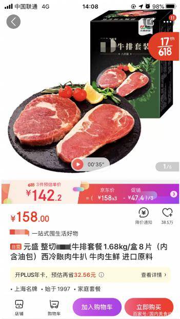 比如某东、某宝上好几块进口西冷牛排打包卖只要一百多,以及很多明星、网红带货的极具价格优势的牛排,之所以便宜,就是因为他们用的是整切肉,也就是拼接肉。真正的原切牛排,不可能这么便宜。