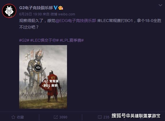 来到国内,G2官博也没有放弃对Fnatic的无情嘲讽。
