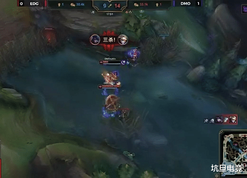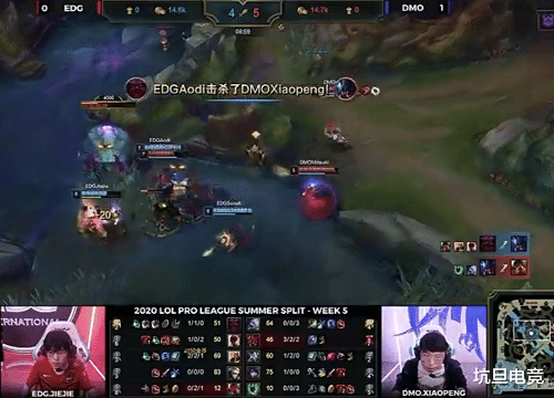 13分钟,两边上路下路同时开打,DMO上路配合出现失误,被EDG打出1换3,Scout的沙皇拿下三杀。而下路的DMO却打赢了,Meiko再度遭到击杀。16分钟,EDG在上路集结推进,DMO这边也是全部支援了上来,双方打了一波大团,DMO打出1换3,厄斐琉斯将Scout击杀拿下赏金。