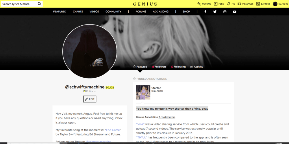 Genius 有一个庞大的歌词数据库可以搜索任何歌曲,他们开发了一个功能,允许听众和注册用户在所有歌词上添加评论,告诉你它们是关于什么的。