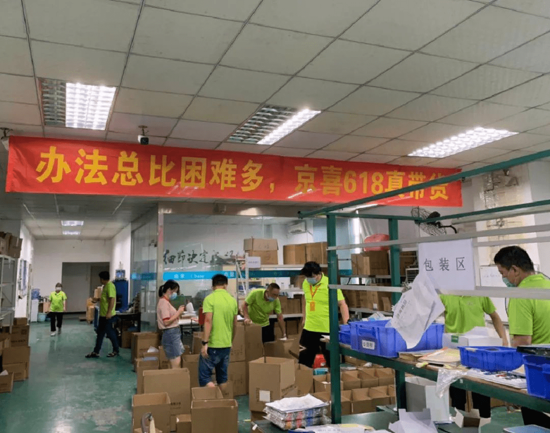 在今年6·18大促期间,黄远生在工厂内挂上“办法总比困难多,京喜618真带货”的横幅,以此鼓励员工为疫后首场电商大促作全力冲刺。