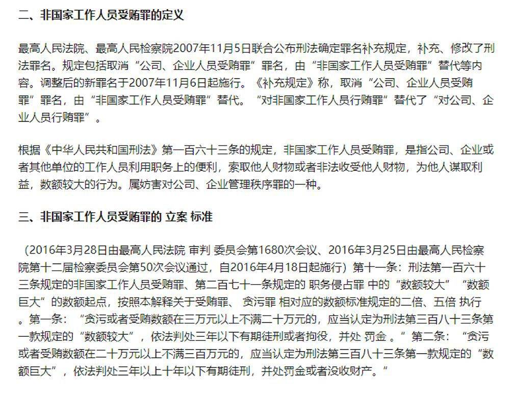 但三万元,这一数额就有点意思了,因为从现行的司法解释来看,三万元是非国家工作人员受贿罪中“数额较大”的起点,也就是说,如果数额超过三万,这一事件将不止是阿里的内部事件,而是一起公诉的案件。而从现在看来,阿里似乎没有提起诉讼的打算,只是想作为内部事件处理。