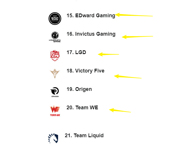 除了前十的排名之外,自然就要来说说这份榜单中最为离谱的一个地方了。EDG战队在这份榜单中排在了15的位置。然后排在他后面的分别是IG,LGD,V5以及WE战队。看到这个排名估计不少网友直接就是笑出了声,EDG能够得到ESPN的青睐是我们没有想到的。