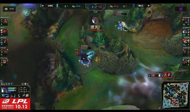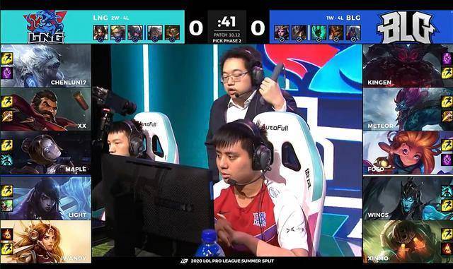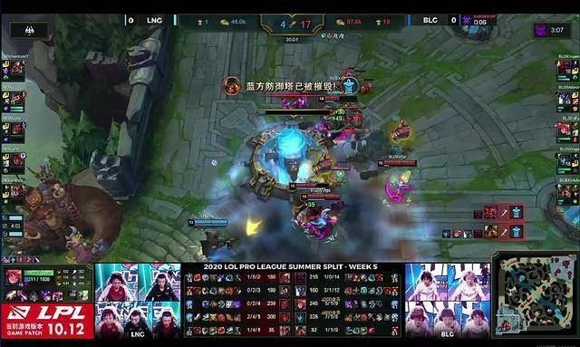 双方bo3第一局,蓝色方LNG,红色方BLG。
