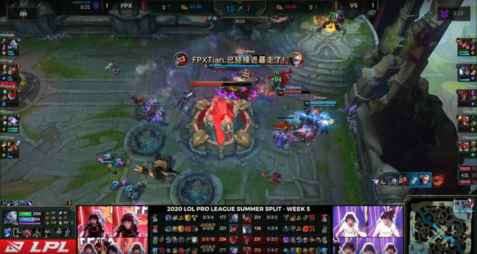 第二局相对来讲,FPX的表现极为出色,首选将V5打野选手擅长的豹女Ban掉,自重依靠上单打出了线上优势,打野全程下路搅屎棍,将V5心态打炸,虽然V5前期经济优势,但由于线上对抗失利,最终被迫三路失掉比分。最后一场更加没有悬念,FPX以超过1W竞技领先,全程控制三条小龙一条大龙,将V5战队压得死死,上演了一场教科书式的教你做人。