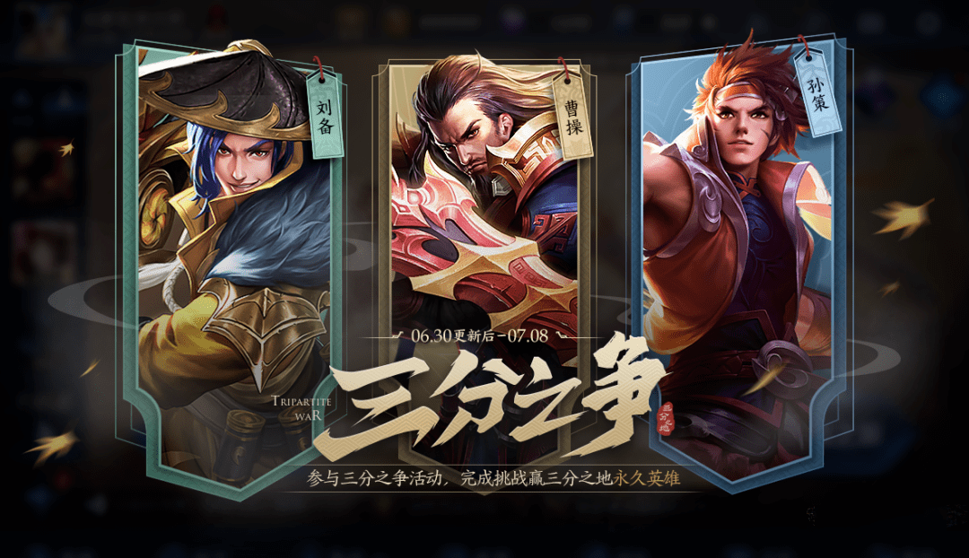 ◆活动详情:在活动期间使用魏蜀吴相对应阵容的英雄去参加5V5匹配或者排位,也可以是参与娱乐模式达到一定局数之后,即可获得魏之令牌、蜀之令牌、吴之令牌,使用令牌就有机会获得对应阵营永久英雄和皮肤体验卡。