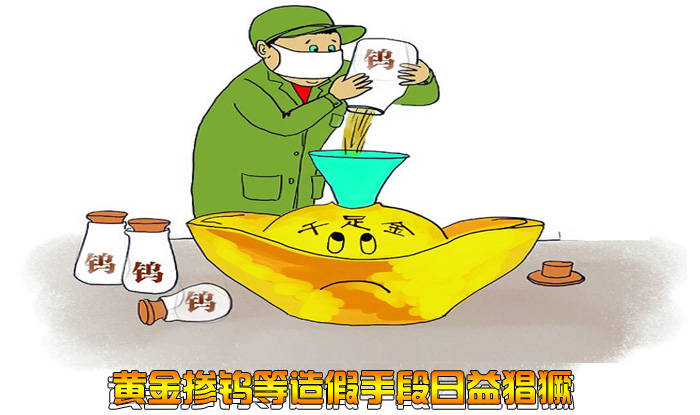 钨为钢灰色或银白色,硬度高,熔点高,常温下不受空气侵蚀;主要用途为制造灯丝和高速切削合金钢,如今把钨掺在黄金里,钨摇身一变,奢华呈现,也充当了金灿灿的黄金!从40元/克一下子翻了好几倍。专家称:“ 钨核心假金条成本仅为真金的1/9。”这些掺钨的黄金制品大量流入市面,让典当行措手不及,防不胜防!遭受了极大的经济损失!