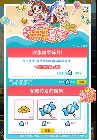 活动期间内每日累计打满5场,可以获得糖果碎片 1个(每日限完成一次)。