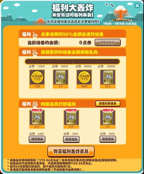 参与活动需要购买道具“福利轰炸”道具(无法使用代金券购买)。