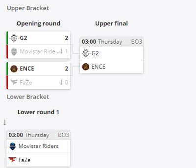 在今日进行的cs_summit欧洲区9-12名排位赛事中,ENCE在xseveN火力全开的情况下成功2-0击败FaZe,而G2面对到略有年轻的Movistar Riders也是不再犯错,最终2-1成功击败对手。