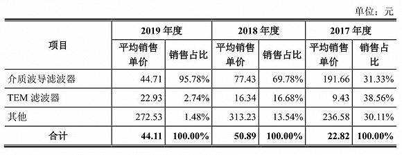 除了竞争者加入,介质波导滤波器自身由于技术发展降价幅度也十分惊人。从产品单价看,灿勤科技滤波器的平均单价从2017年的191.66元降至2019年的44.71元,降幅高达77%。后续随着竞争加剧,该产品仍存在较大降价空间,以量补价到时可能是灿勤科技唯一的选择。