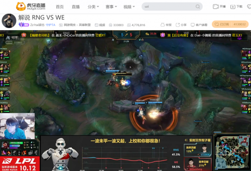 虎牙临平路菜场,赛后给你带来最专业的复盘,阿驴身为专业的OB解说,说起比赛来可谓是游刃有余。弹幕上都说RNG不该拿赛娜,然而阿驴并不把这当做RNG失败的理由,“RNG太松散了”阿驴说道 。当然,阿驴的解说不仅仅专业,而且富有磁性,每到团战便高潮迭起:“WE这波团战奥恩单杀黄鸡太关键了!”牢牢吸引住观众。