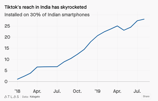 而且,不少App已经在印度具有不可替代的作用。比如,根据数据分析公司App Annie的数据,印度人2019年在TikTok一共花费了55亿小时。