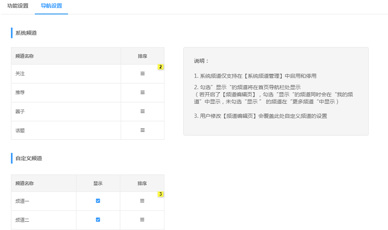 (1)导航设置控制频道排序与显示开发完成;