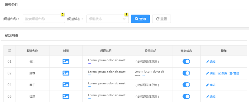 (4)系统频道列表展示(开启/关闭/编辑功能)开发完成;
