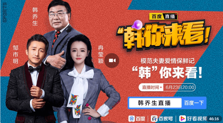 百度董事长兼CEO李彦宏参加樊登读书直播时曾明确表示,要加码做明星直播平台。前不久,有媒体报道称百度发力名人大V直播。韩乔生这档栏目的推出,表明这一计划正在有序推动。