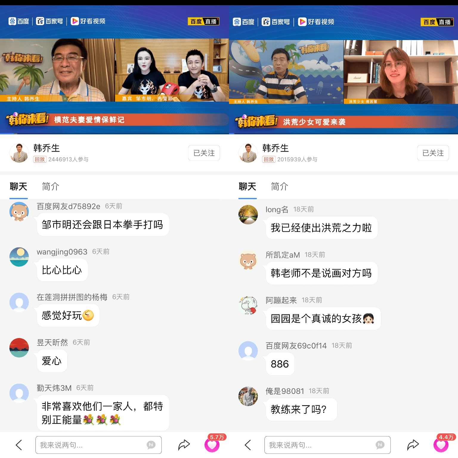原标题:百度直播联合韩乔生深入文体圈 系列直播获1200万人次观看