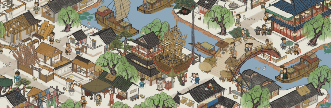 《江南百景图》画风传承自仇英版《清明上河图》美学,以明朝万历年间江南地区为背景,将江南的婉约之美与明朝街边的市井之气巧妙融合,复原出真实且灵动的明代江南城市生活。