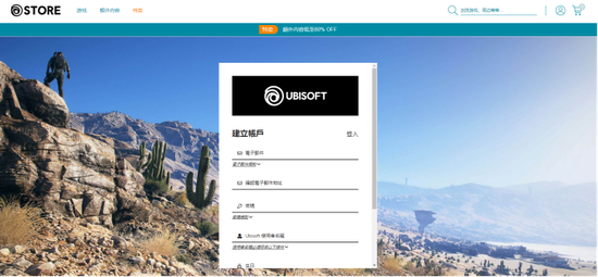 打开育碧官网:https://store.ubi.com/cn/account-connection,点击右上角个人头像,选择建立账户: