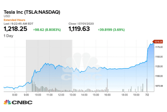 最近,全球股市迎来了不小的上涨,似乎人们期盼已久的小牛市即将迎来。而在这其中,特斯拉的股票价格尤为亮眼,最近特斯拉股票价格超过1200美元的新闻登上全球热搜,因为这让特斯拉市值一跃达到了2200亿美元,相比于其它汽车厂商,特斯拉几乎要俯视群雄了。那些老牌汽车厂商,估计打死都没想到。当年不被看好的毛头小子,竟然会有这么大的上涨空间,仅仅用几年的时间,就完成了他们十几年都还没完成的业绩。这些前浪们,也只能躺在沙滩上看着后浪翻滚。