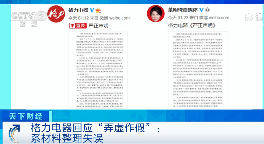 原标题:格力电器回应“弄虚作假”:系材料整理失误