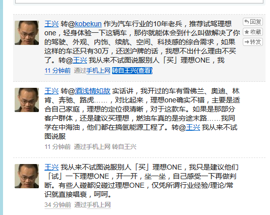 “有些人碰都没碰过理想ONE,仅凭所谓行业经验/理论/常识就直接唱衰,呵呵,”王兴表示。