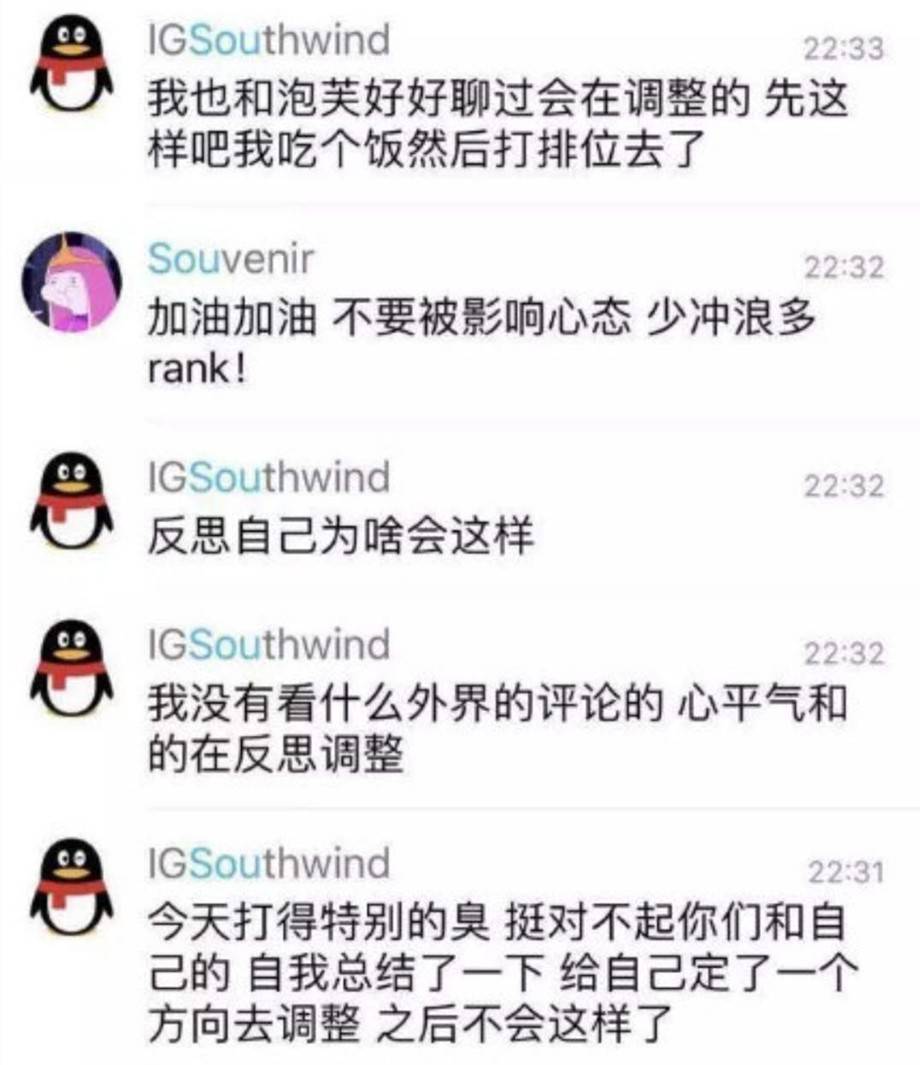 IG战队惨败给了JDG战队之后,南风状态也直接被粉丝们喷上了热搜,粉丝们纷纷留言热议南风的表现,而南风在比赛结束之后,也在粉丝群中对自己在比赛中的表现进行了道歉,南风在粉丝群中留言表示自己打得太臭了,对不起自己和粉丝们,自己也总结了一下,并且也定下了一个方向去调整,自己会进行反思,以后不会这样了,而且,南风还表示已经和Puff聊过了,会做出调整的,看来,南风也对自己的表现很不满意呀!