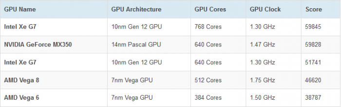 从纸面上看,英特尔理论上应该胜出,AMD的GPU拥有384到512个着色器,时钟速度在1600MHz左右,英特尔的Xe GPU有高达768个着色器和1300 MHz的时钟速度。