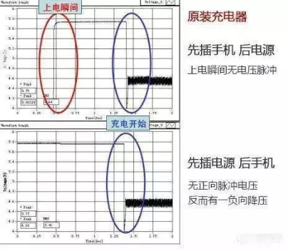 特别是劣质的充电器,先插手机再插电源,在上电的瞬间,就会产生较大电压脉冲。先插电源再手机就没有正向脉冲电压的问题。同样的,拔充电器的瞬间容易产生反向瞬间电流,如果充完电先拔充电器可能会伤害手机。