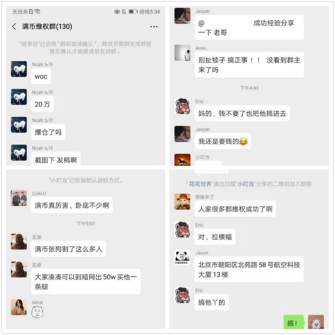 随着这件事的发酵,一些在被币满损失的人已经组建了维权群,并且准备向张满满拉横幅维权!