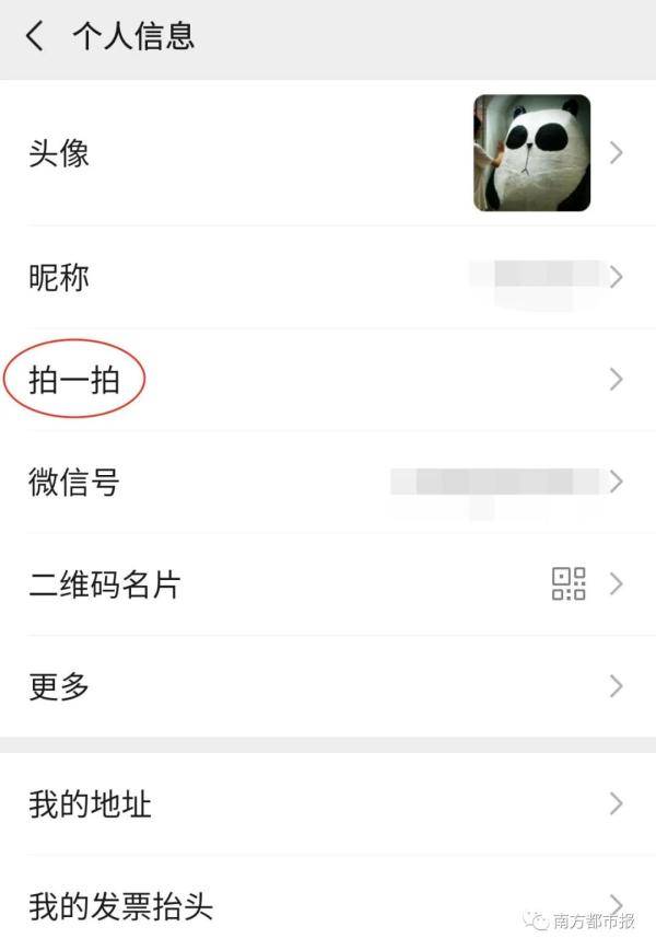 2、进入个人信息设置页面后,点击“拍一拍”: