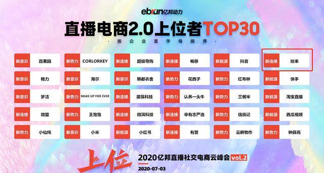 7月3日,纷来联合创始人、供应链负责人王仕江受邀参加在“上位·2020亿邦直播社交电商云峰会”,会上,王总为大家分享了如何用“自零售模式为中腰部从业者打造社交分销网”,同时,纷来上榜“亿邦动力云峰会直播电商2.0上位者TOP30”榜单。