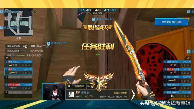 在武器大玩家对抗赛中,由于比赛的胜利条件为率先达到40击杀,同时不同的枪械的出现在赛场中更考验选手们的适应力。在前期蛮蛮便是拿下6个击杀位居前列,蛮蛮与嗜血作为第一阶段的领先者。