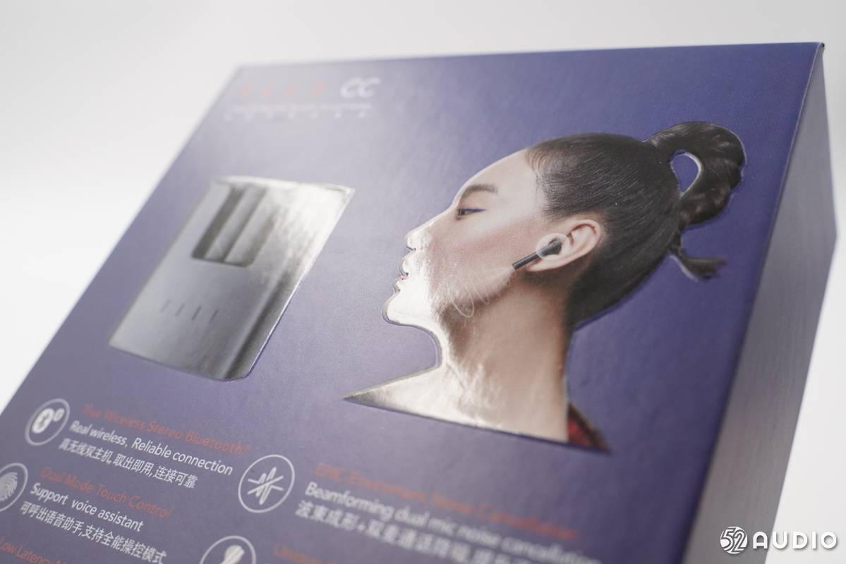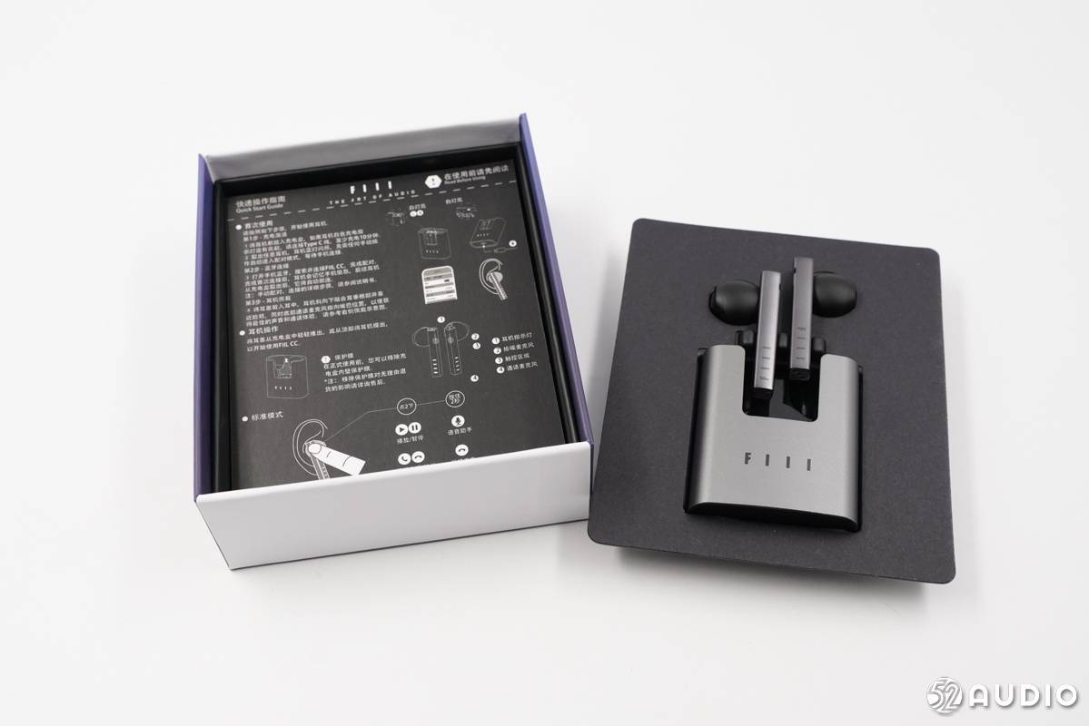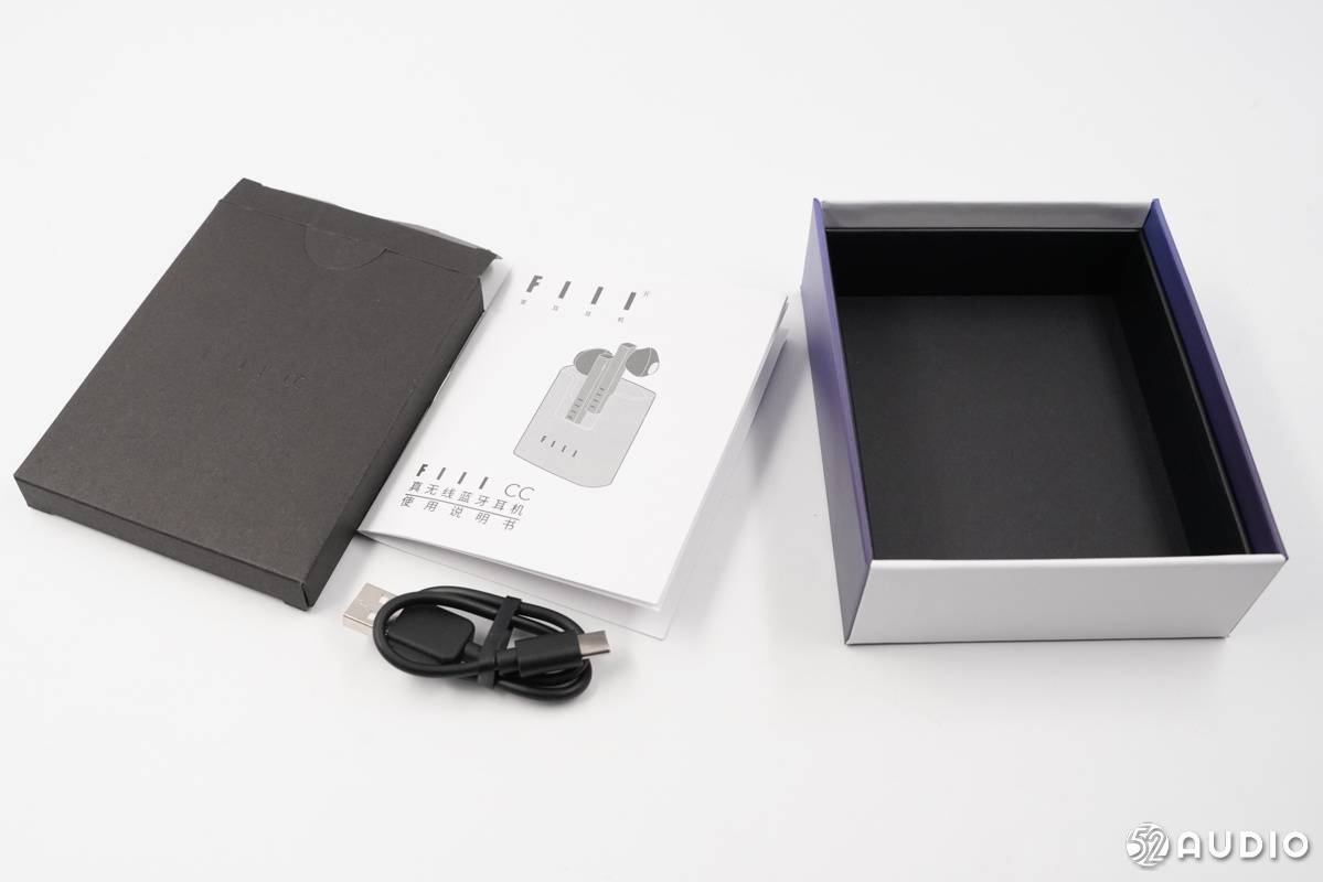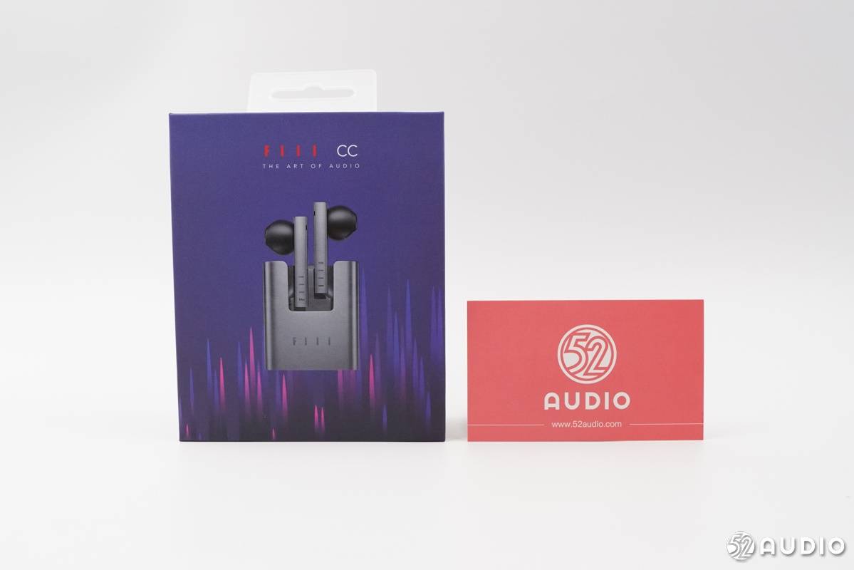 卡片下还有一个包装盒,正面印有FIIL CC、THE ART OF AUDIO的黑色亮面字体。