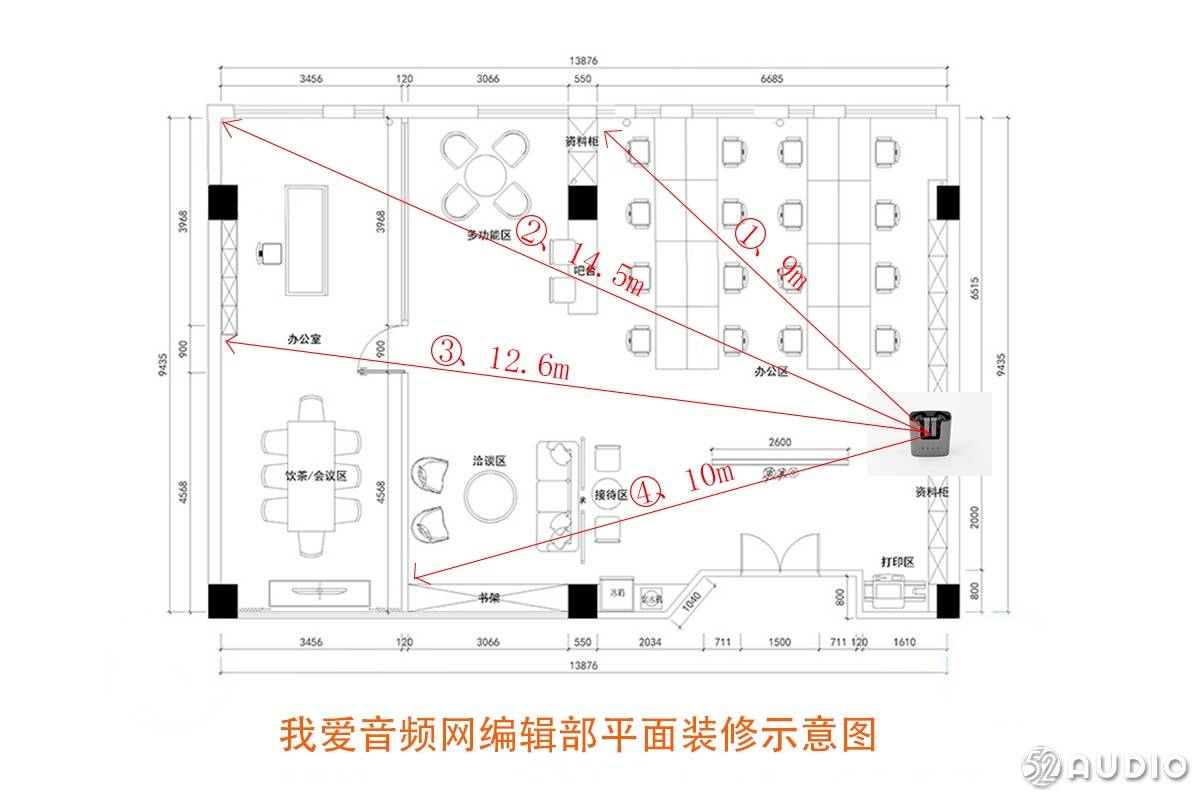 在测试FIIL CC的有效连接距离上,通过在我爱音频网编辑部内的固定位置放置连接的手机,然后佩戴耳机移动到不同的位置,通过苹果的测距仪测得不同位置的长度距离,来进行距离测试。