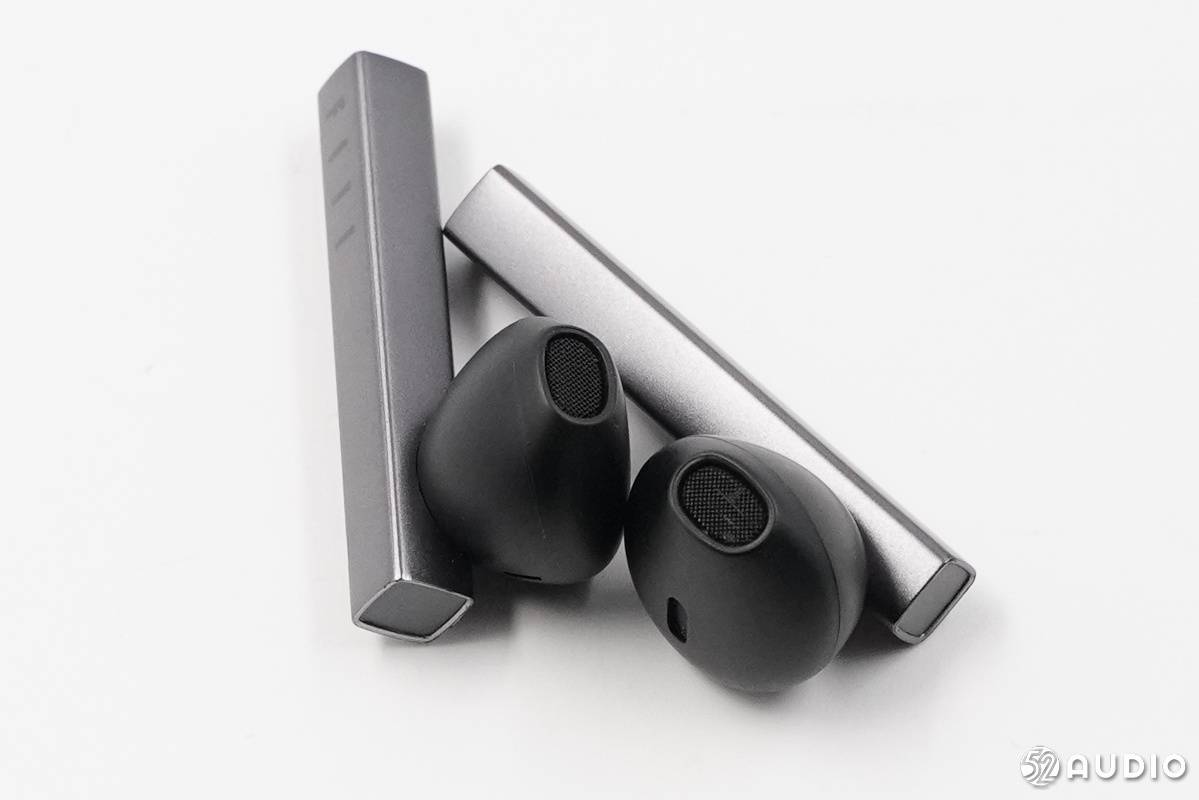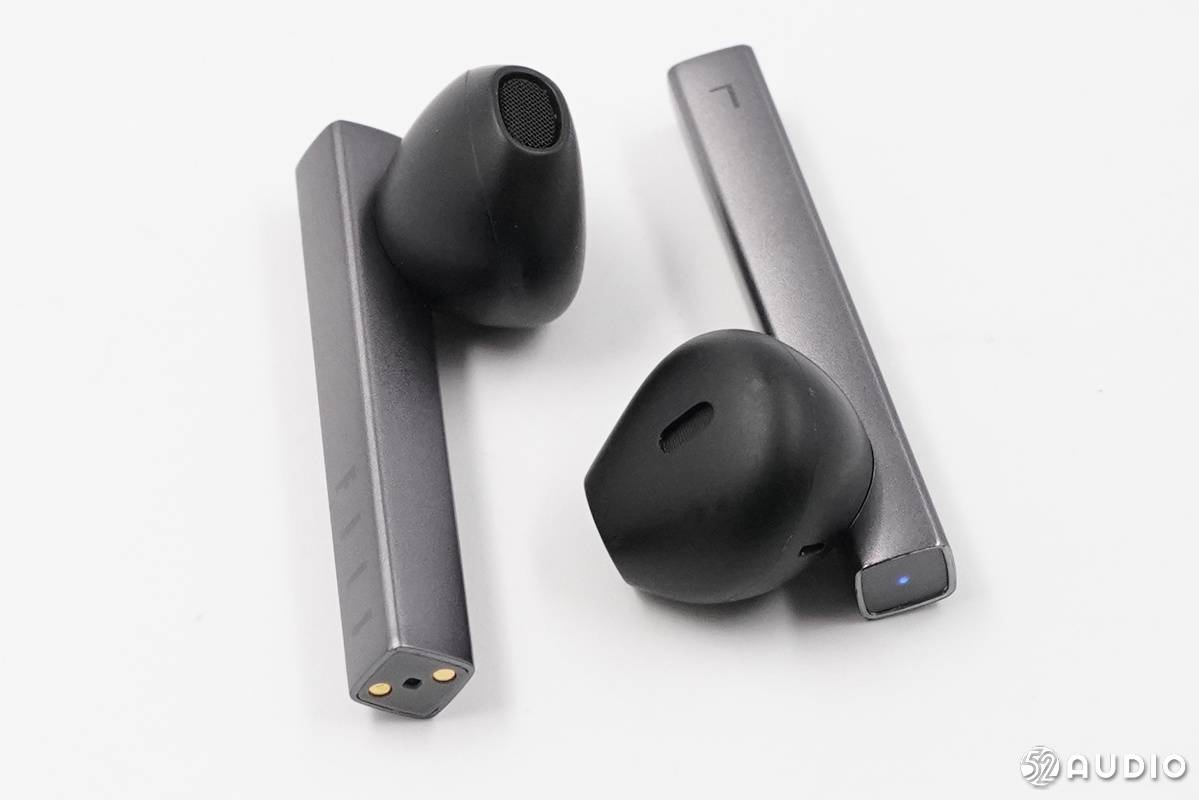 耳机方面也从豌豆状的入耳式设计改为了柄状的半入耳式设计,有棱有角,立体感十足。