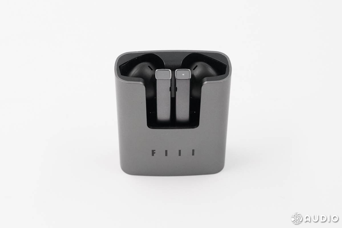 耳机盒正面下方有深灰色字体的FIIL品牌LOGO。