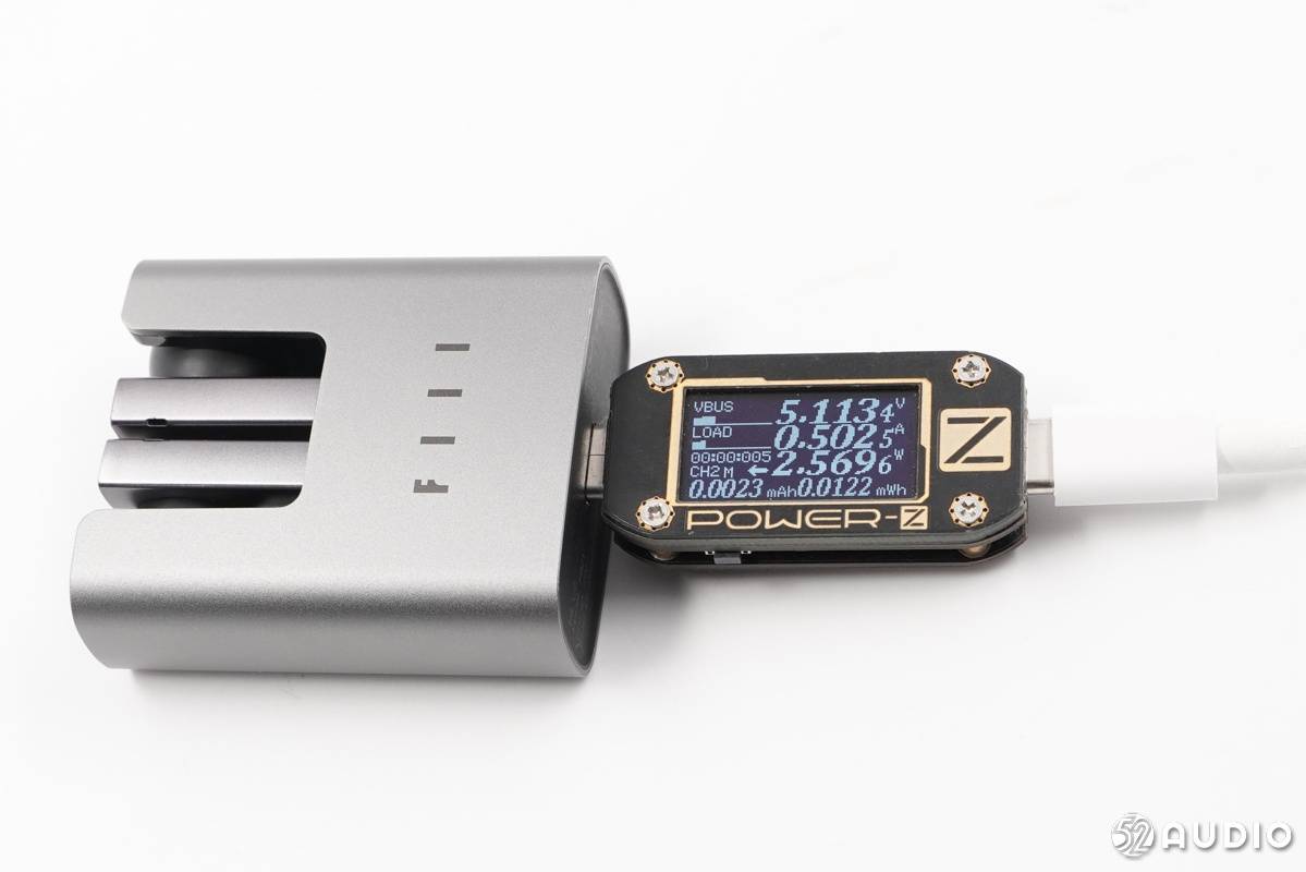 我爱音频网采用ChargerLAB POWER-Z KM001C便携式电源测试仪对FIIL CC进行有线充电测试,有线充电功率约2.57W。