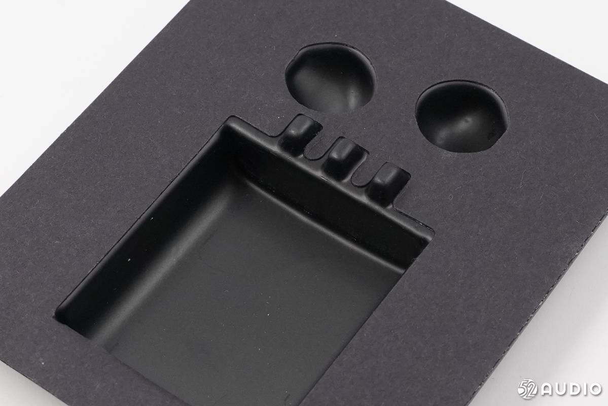 耳机盒顶部和正面上半部分中心位置都有开孔,可以一目了然的看到耳机。
