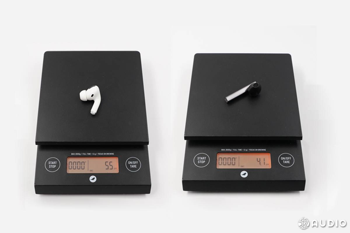 重量方面,我爱音频网对这款耳机进行了实测并与Air Pods pro进行了对比。