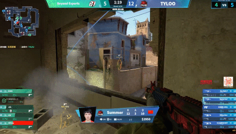 TYLOO对阵Beyond 图二Mirage,上半场开局TYLOO率先拿下四分,随后Beyond开始追分,但TYLOO有条不紊的进攻战术使他们保持住了优势。上半场TYLOO 10:5 Beyond。下半场开始,TYLOO作为防守方及时回防和补枪,最终以16:7赢得图二胜利。