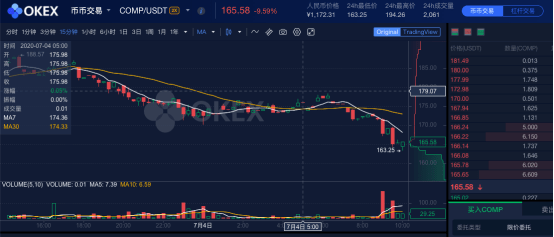 当市场上仍有很多人在争论DeFi和CeFi孰优孰劣时,OKEx等交易所作为典型的CeFi代表,在DeFi领域的步伐正迈得越来越大。早在2019年,OKEx就已上线了MaKer的稳定币DAI,也是全球第一家支持MakerDAO借贷产品的交易所。通过将OK矿池与 Dai 的集成,用户可以在 OKEx 平台上直接将 Dai 存入 Dai 存款利率中,获得实时利息以及由 OKEx 提供的专属 1% 奖励。因此,Compound作为加密市场的焦点,OKEx自然也不会错过。6月29日,OKEx正式上线了COMP,开通COMP/BTC和COMP/USDT交易市场、COMP杠杆交易和余币宝服务,并上线了COMPUSDT永续合约。