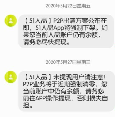 今年5月,51人品贷开始向平台剩余用户发布“业务强制清零“的通知。与微贷网一样,将彻底退出网贷行业。这两家公司的被查,成为针对P2P公司一系列清退事件的代表。